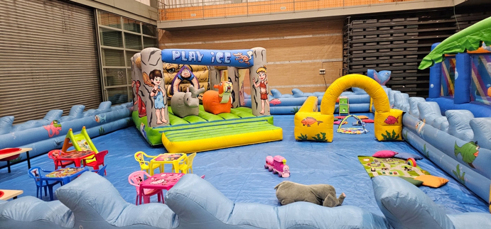 - Ofrecemos la opción de complementar la ludoteca para niños con un inflable infantil exclusivo para los niños de 0 a 5 años, convirtiendo la zona de salto en un espacio seguro.