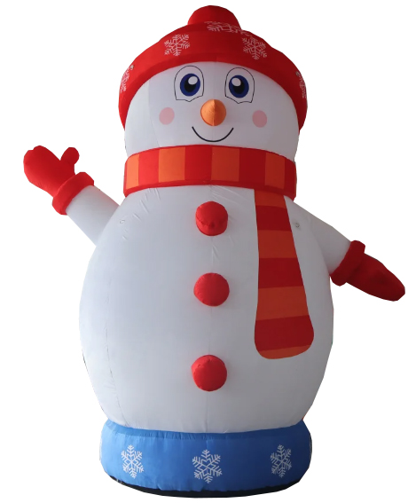 El ninot de neu inflable és de color blanc, simulant la neu, i porta incorporats un barret i una bufanda per donar color i vistositat a l’element inflable. El ninot de neu està fabricat amb tela Oxford d’alta resistència i disposa d’impressions d’alta qualitat per aportar un toc màgic i elegant a l’element decoratiu. Amb una alçada imponent de 4,5 metres, aquest inflable és perfecte per decorar espais amplis, interiors o exteriors, places, centres comercials o parcs temàtics nadalencs.